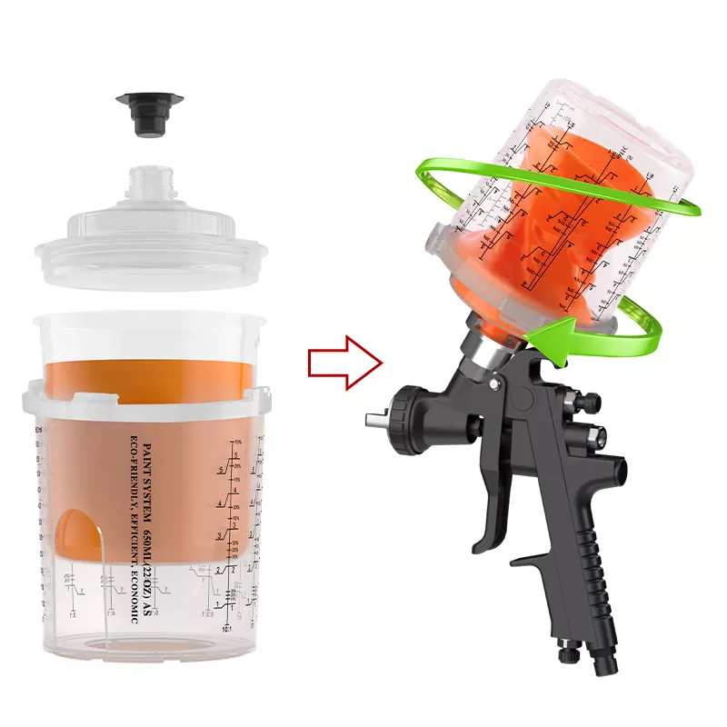 पारदर्शी कप डिजाइन शेष पेंट का निरीक्षण करना आसान बनाता है। डिस्पोजेबल स्प्रे कप यह सुनिश्चित करता है कि स्प्रे गन पेंट को लीक किए बिना 360 डिग्री स्प्रे कर सकती है, जो पेंट टपकने के कारण लकड़ी के अनाज की सतह संदूषण को पेंट कर सकती है। यह लकड़ी के दरवाजों, अलमारियाँ और ठोस लकड़ी के फर्नीचर पर पु/नेकां पेंट छिड़काव के लिए उपयुक्त है।