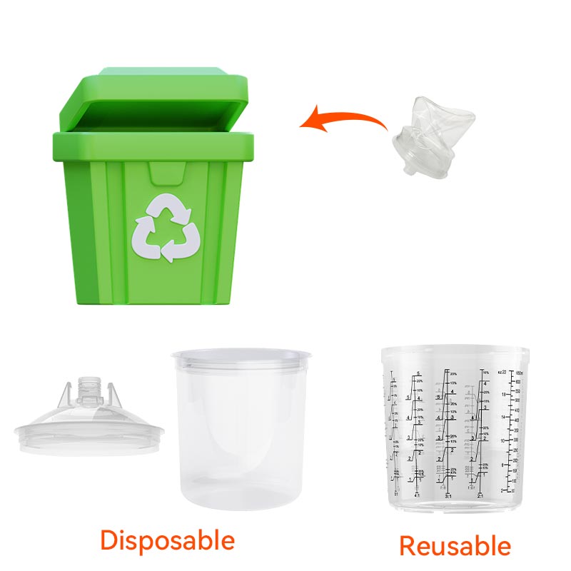 वास्तविक दुनिया की ज़रूरतों के अनुरूप डिज़ाइन किया गया,डिस्पोजेबल स्प्रे गन कपपारंपरिक पेंट कप के दर्द बिंदुओं का संपूर्ण समाधान प्रदान करें, कोटिंग टूल्स का संपूर्ण पुनर्आविष्कार प्रदान करें जो कुशल, किफायती, उच्च-गुणवत्ता और उपयोगकर्ता के अनुकूल हो।